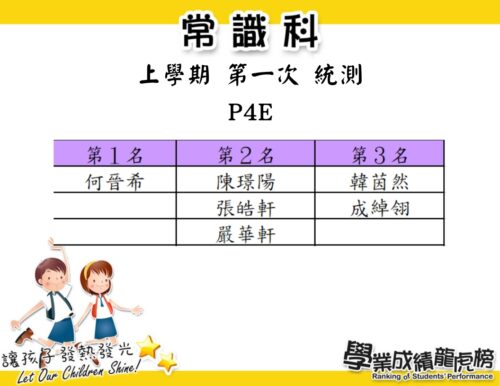 嗇色園主辦可譽中學暨可譽小學 – 小學龍虎榜